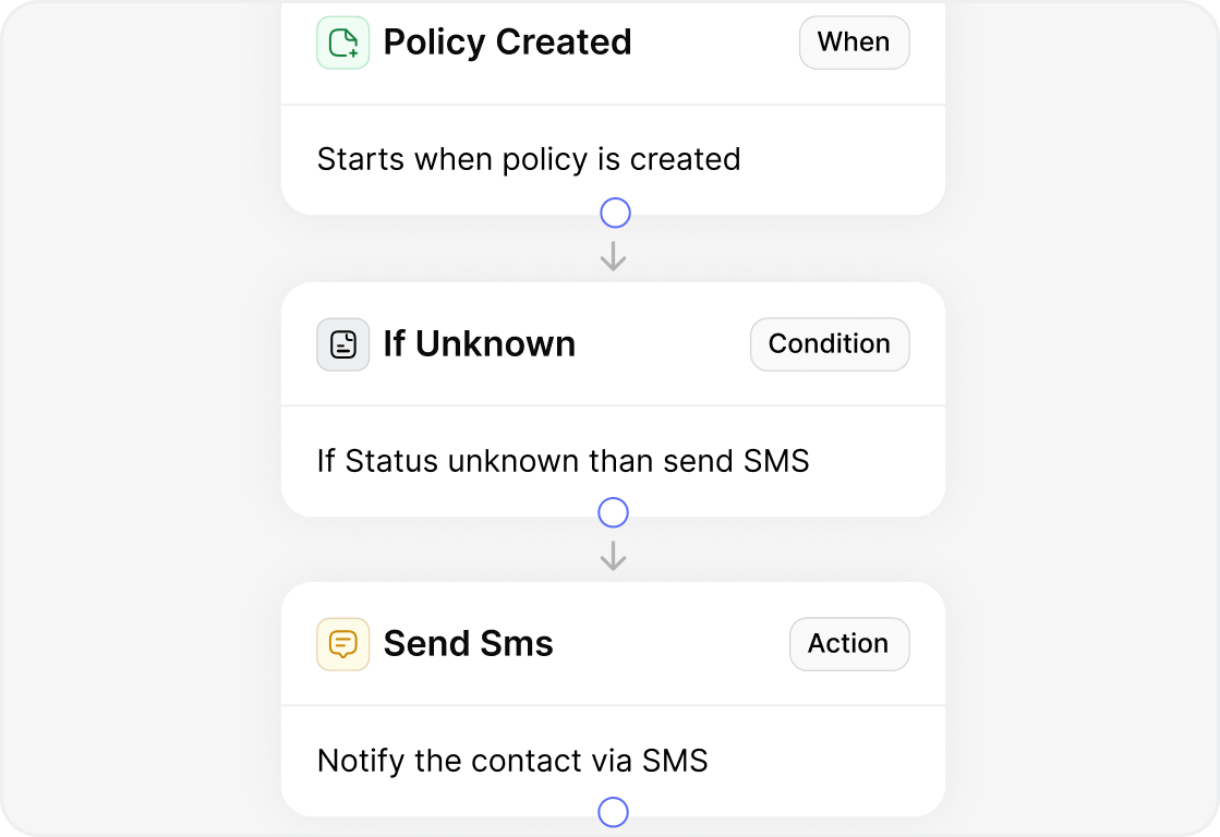 Automate actions based on policy status changes. Messages, tasks, and alerts.